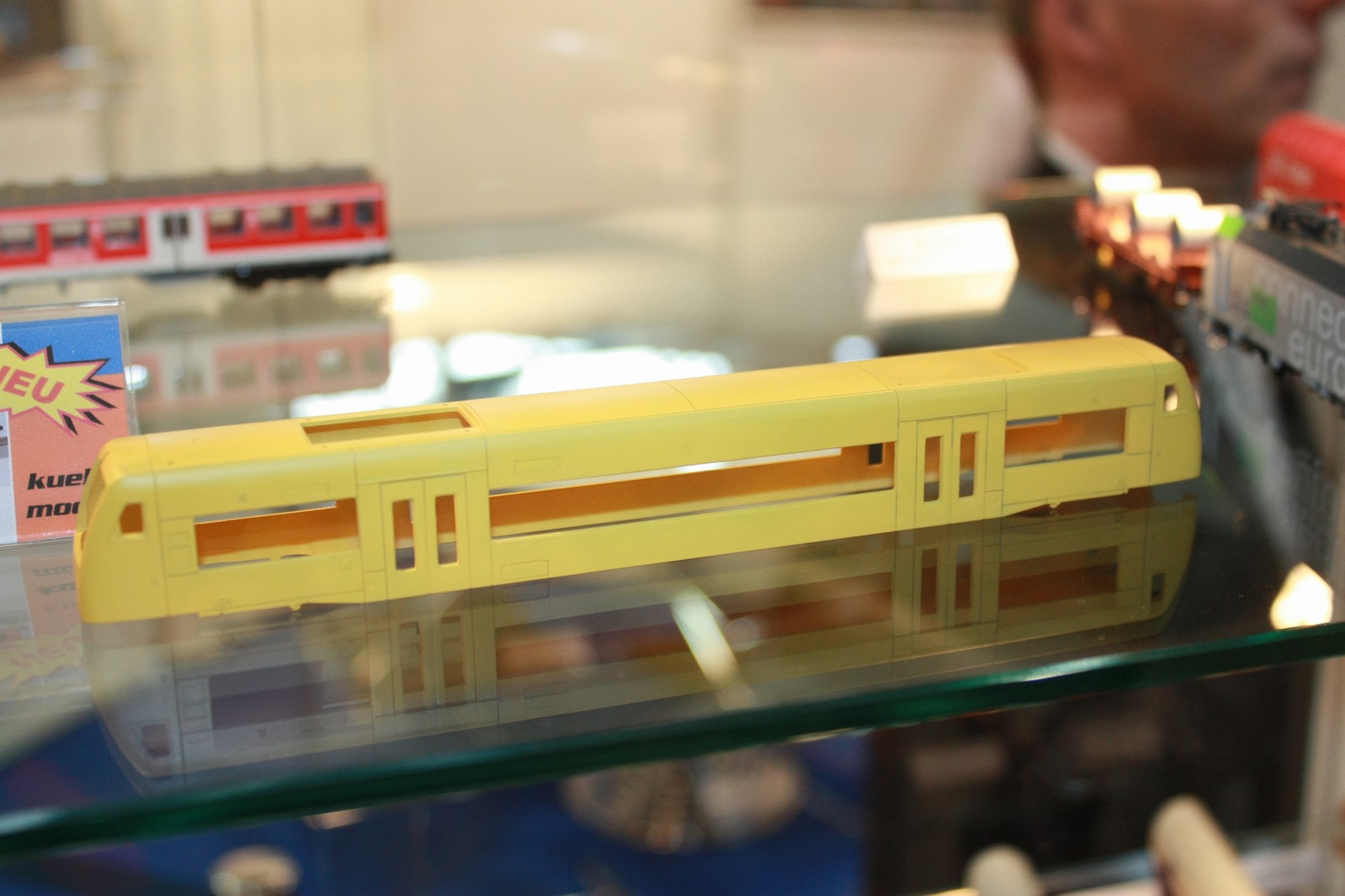 Firma Kuehn představila celou škálu svých připravovaných modelů některé již byly představeny na minulých veletrzích zde jsme mohli vidět jak výrobce s výrobou modelů pokročil, tak například patrový vůz v provedení ČSD je již hotov, brzy má vstoupit do prodeje je se opravdu na co těšit jedná se o propracovaný model do sebemenších detailů podobně jako u verze ČD před několika lety, Dalším lákadlem byl již hotový odlitek motorového vozu 840 - ČD. Dále se na nás ve vitrině usmívali německé lokomotivy herkulesy a taurusy. Do konce tohto roku má výrobce firma Kuehn model uvést do prodeje rychlíkové vozy ČSD, ČD i několik brejlovců na bardotky se pak můžeme těšit příští rok . V naší nabídce nově naleznete modely z limitované edice bardotek a patrových vozů, které budou rovněž vyrobeny v průběhu příštího roku.