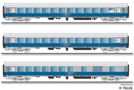 01041 Tillig TT Bahn - 3- dílný set rychlíkových vozů „Train Militaire Francais de Berlin 2“