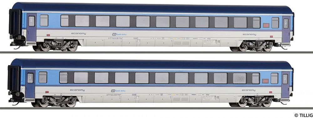 01060 Tillig TT Bahn - Souprava dvou rychlíkových vozů 2.třídy Eurofima Bpmz 89101060 Tillig TT Bahn