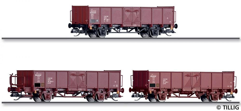 Informace k 01077 Tillig TT Bahn - 3-dílný set otevřených nákladních vozů Es