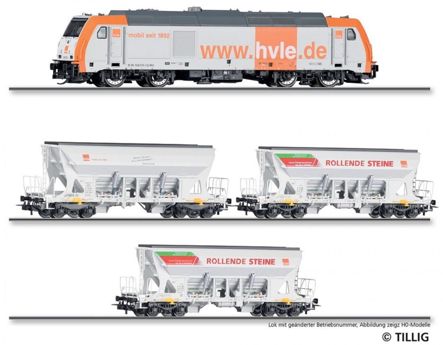 Informace k 01083 Tillig TT Bahn - Souprava nákladního vlaku obsahující dieselovou lokomotivu řady 246 001 a 3 v