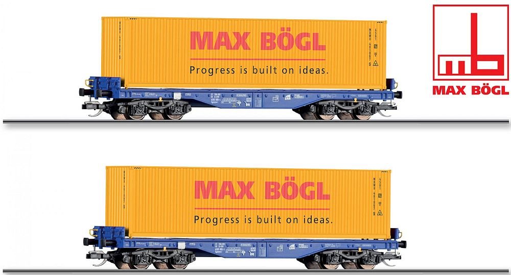 Informace k 01108 Tillig TT Bahn - Souprava dvou plošinových vozů Sgmmns 4505ložené dvěma 40‘ kontejnery "Max Bö