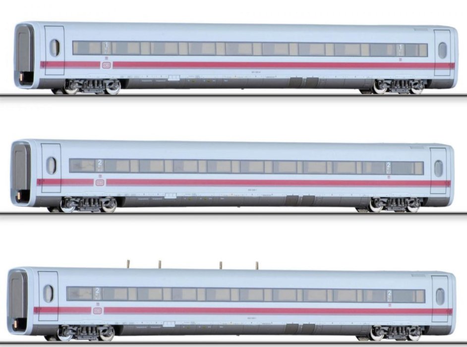 01773 Tillig TT Bahn - 3- dílný set "ICE 1991" , 1x 1.třída, 1x 2.třída a 1x služební