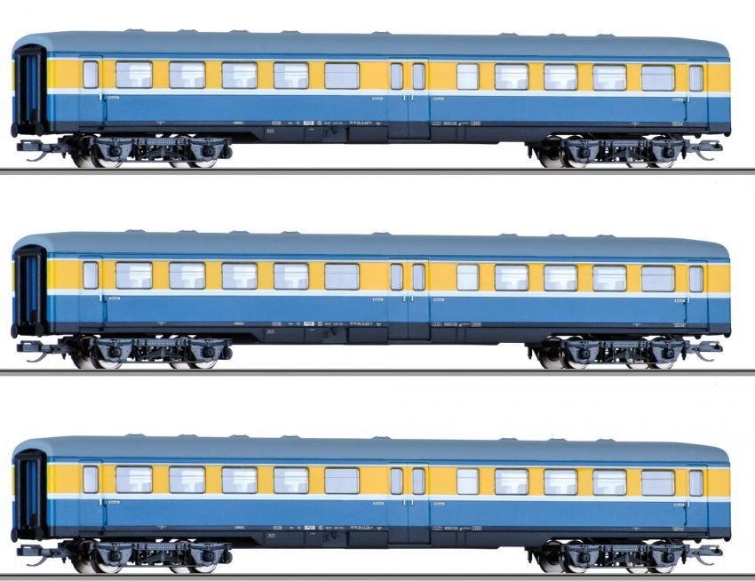01775 Tillig TT Bahn - 3- dílný set rychlíkových vozů se středními vstupy Bghue „S-Bahn Leipzig“