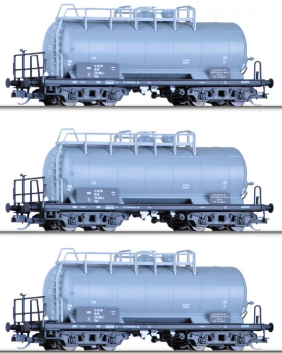 01792 Tillig TT Bahn - 3- dílný set cisternových vozů ZZh "VEB Hydrierwerk Zeitz"