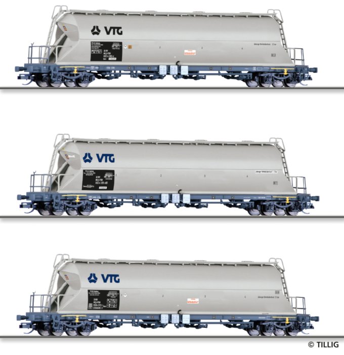 Informace k 01820 Tillig TT Bahn - 3-dílný set vozů na přepravu uhelného prachu "VTG AG"