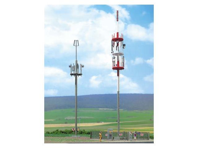 2x pohyblivé rádiové stavby - stavebnice. Moderní betonová stavba. Variabilní zástrčný systém ke kombinaci ( maximální výška stavby 320 mm "pohyblivé" ), komplet s oplocením a další jednotlivé součásti, například rozdílné satelitní antény, skříňový rozvaděč, signální skříň, vedení a vodiče ...atd. Připevnění na jednotlivý stabilní podstavec. Možno dodatečně dovybavit.