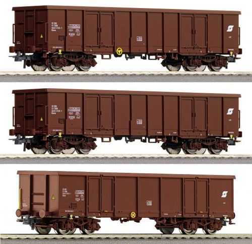 3. dílný set otevřených nákladních vozů drah ÖBB. Délka 161 mm.