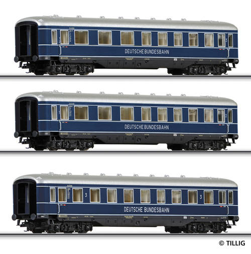 3-dílný set rychlíkových vozů drah DB.