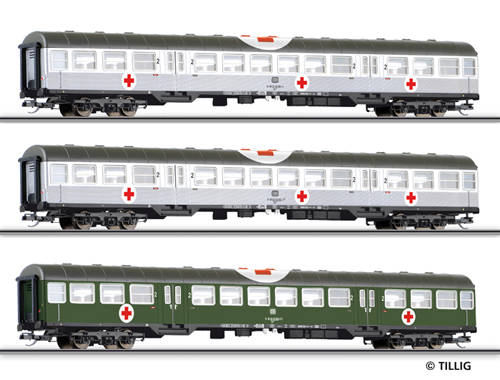 3-dílný set vozů vojenské nemocnice, typ Silberlingen Bn 724drah DB.