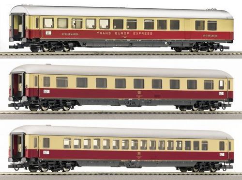 3. dílný set vozů drah DB. Délka 303 mm (jeden vůz).