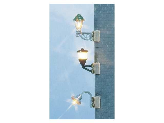 3 různé nástěnné lampy Na osvětlení ulic, města nebo domovních prostorů.Lampy obsahují kabel k připojení. Lze zhotovit nezávislý chod na trafo a vedení. Na trafo 14-16 V.
