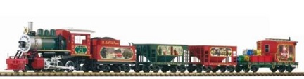 37122 PIKO - Start set s parní lokomotivou a 4 nákladními vozy s vánoční tématikou, ovál kolejí a trafo