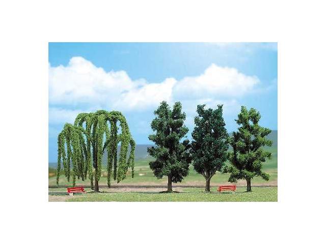 4 listnaté stromy Sada obsahuje: buk, břízu, topol a smuteční vrbu výška asi 115mm 2 lavičky