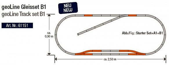 Set obsahuje oranžově zvýrazněné koleje, základní ovál je ze satandarního stratsetu s vlakem a ovládáním a setu A1 (61150)