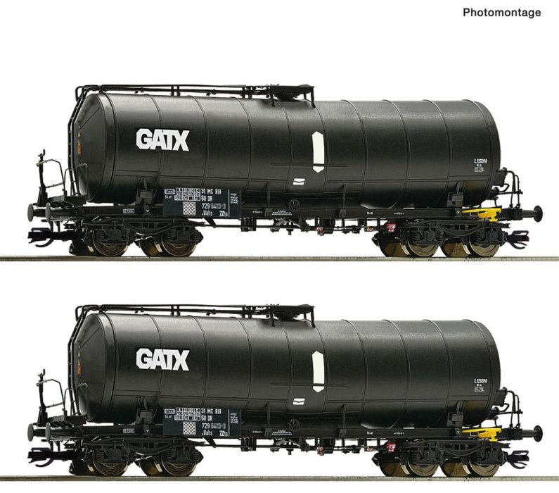 6680002 Roco - Souprava dvou cisternových vozů Zaes se zkoseným kotlem GATX