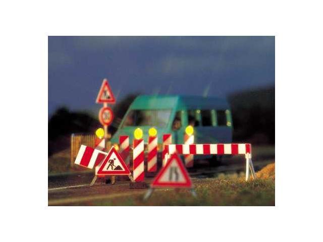 7 výstražná světla a blikací zapojení Kompletní set: 7x výstražné cedule ( z toho 4x LED diody). Blikací zapojení. Staveništní zařízení.