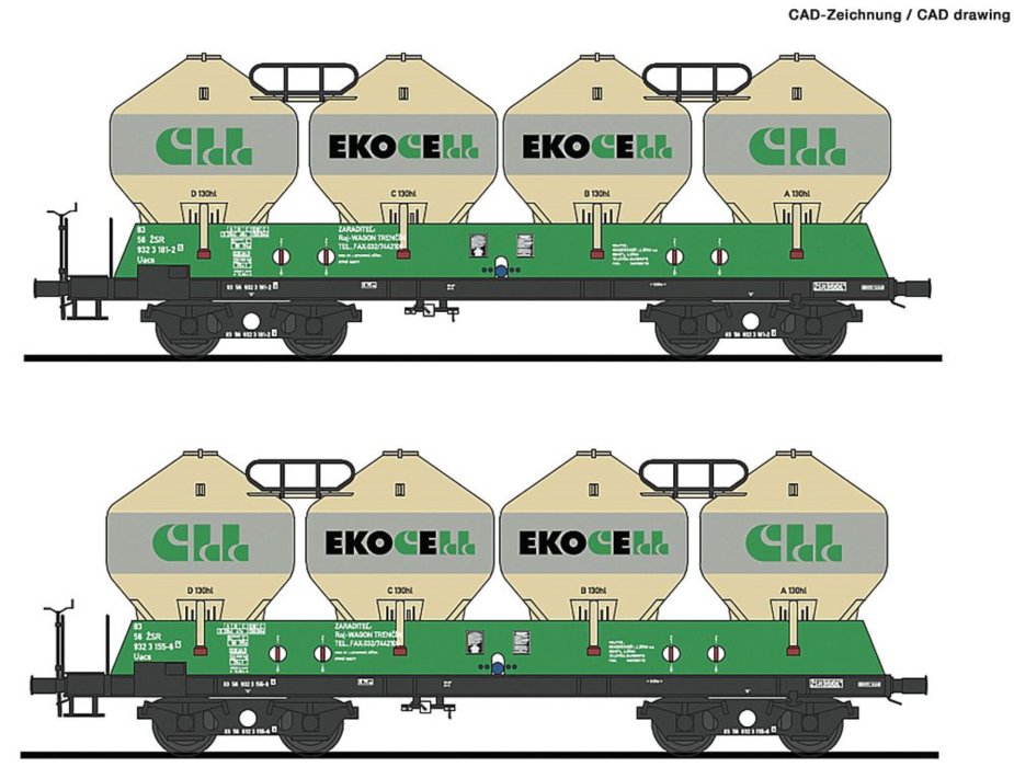 Informace k 77006 Roco - Souprava dvou vozů na přepravu cementu Uacs "Ekocell"