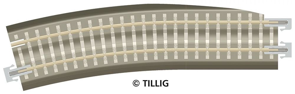 83786 Tillig TT Bahn - BG3-BR12kli - oblouková kolej levá R 353mm/15°, dřevěné pražce