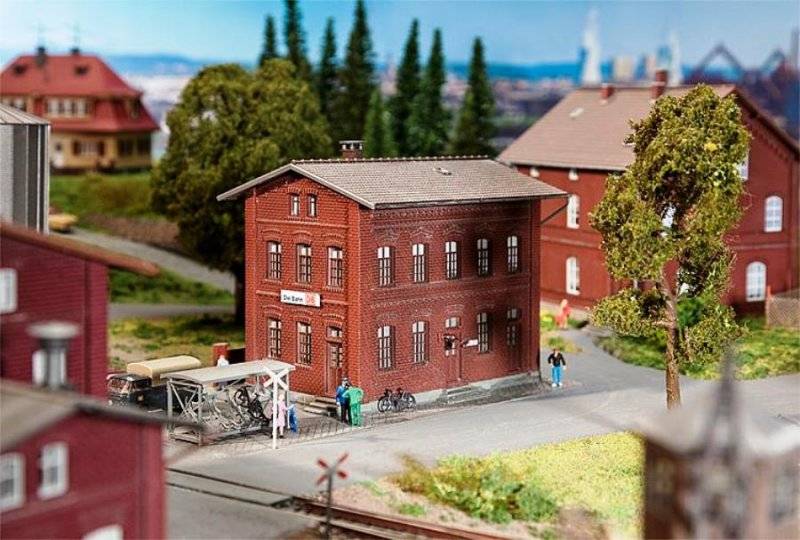 Stavebnice administrativní budovy se stojanem na jízdní kola a se základovou deskou.