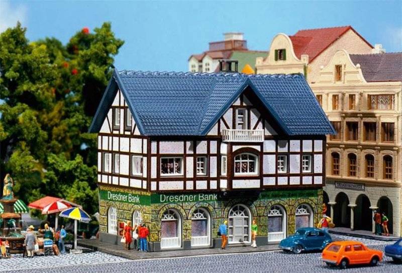 Stavebnice modelu budovy banky.