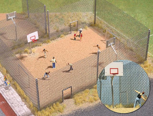 Basketbalové hřiště Rozměry: 22 x 15 cm Obsahuje 2 koše a plot.