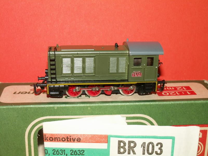 Dieselová lokomotiva zelené barvy řady V50 101 drah francouzských naháněny všechny nápravy, model není osvětlen.