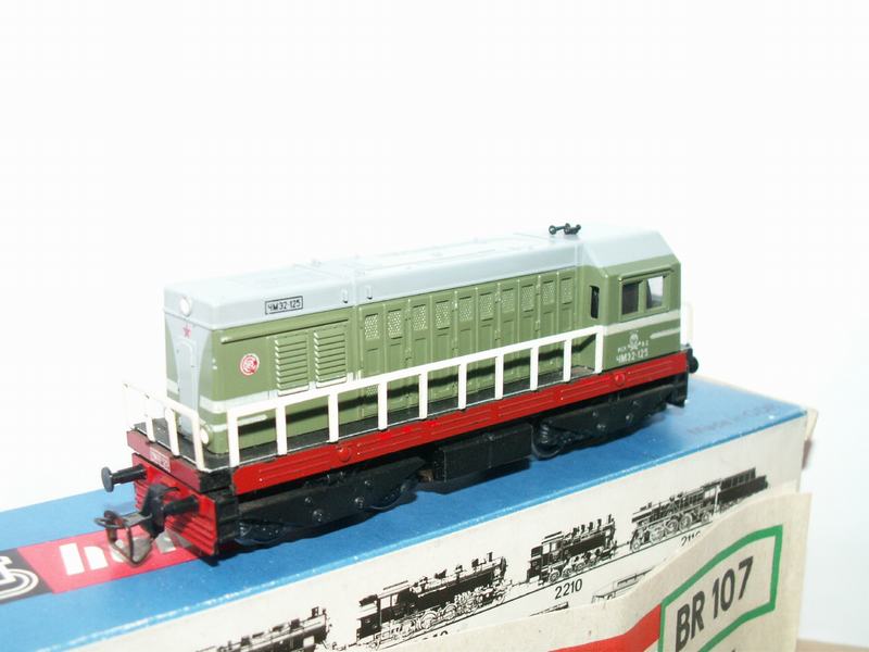 Dieselová 4 osá lokomotiva zelené barvy drah CCCP řady YM 32, bílé zábradlí nebo černé,lokomotiva má naháněny dvě nápravy z toho jedna je opatřena bandáží a není osvětlena. Zcela nový model bez poškození.