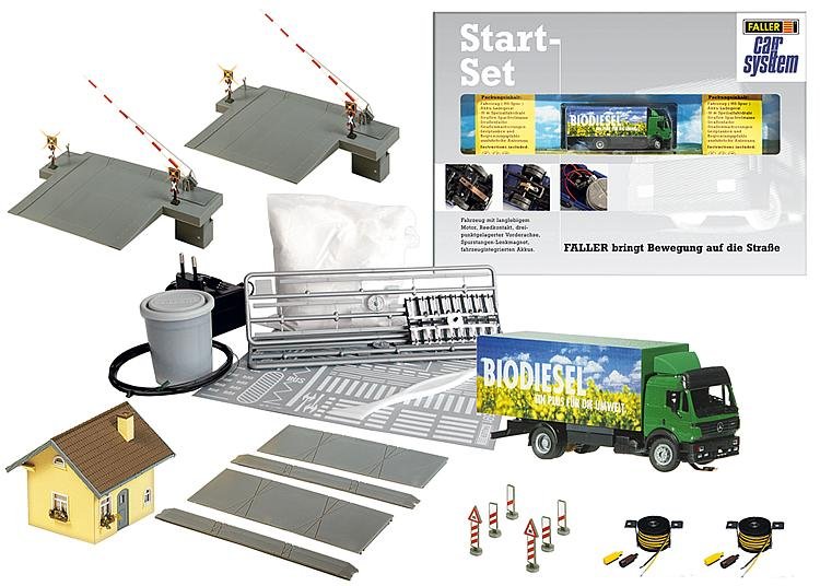 Startovací sada obsahuje vše k započetí instalace automobilového provozu na kolejišti, včetně nákladního vozu.