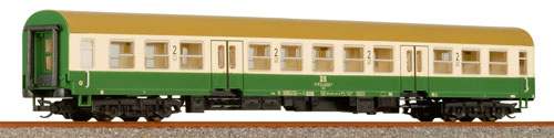 Cestovní vůz 2.třída Bmhe drah DR. Barvy zelené,slonové kosti a hnědá střecha je možné vnitřní osvětlení, interier vozu je vybaven. Délka:220mm.