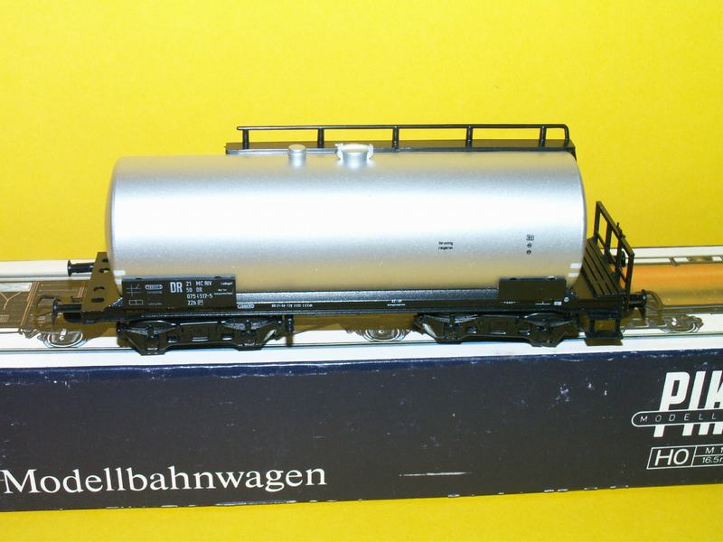 cisternový nákladní vůz stříbrné barvy model má neporušené zábradlí drah DR originální krabička. Výrobce:PIKO velikost Ho.