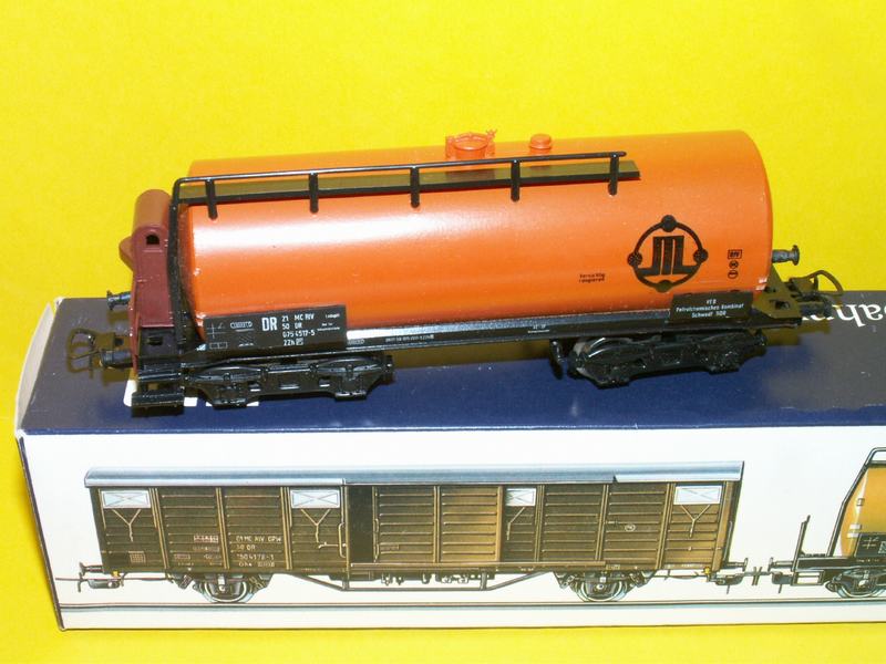 Nákladní vůz oranžové barvy 4 osý s budkou z zabradlí neporušené, orig.krabička.