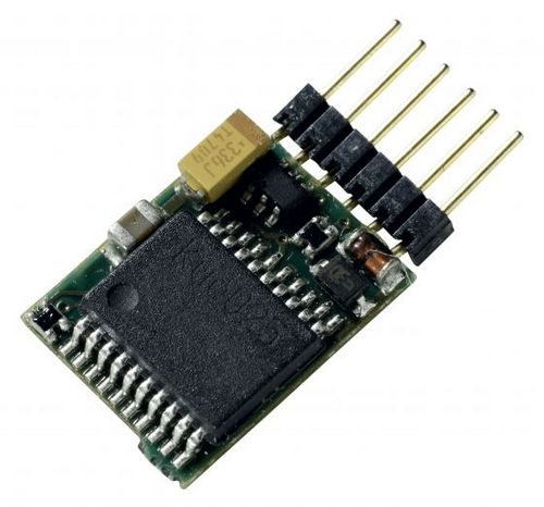 DCC-Decoder pro HOe,TT,N lokomotivy Dekodér přímo s kontaktem pro NEM 651 se zátěžová regulací. Automatické poznávání DCC nebo analogického stejnosměrného proudu. Automatický jízdní stupeň-poznávání (14/28/128 stupně). Na-ovládací kmitočet pro motory 16 kHz maximální-motor-proud 700 miliampér, dva výstupy pro osvětlení do max. 150mA rozměry: 13,3x8,8x3,3 mm