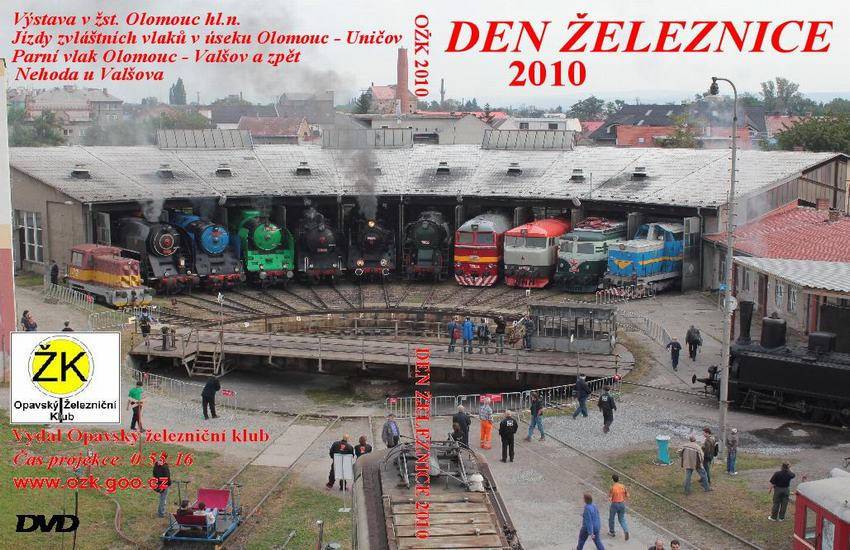 Den Železnice 2010 Záběry na DVD jsou z výstavy uspořádané při Dni Železnice v Olomouci a jízdách zvláštních vlaků v úsecích Olomouc – Uničov, Olomouc – Valšov a zpět a jsou doplněny záběry nehody u Valšova. DVD, česky, 55 minut