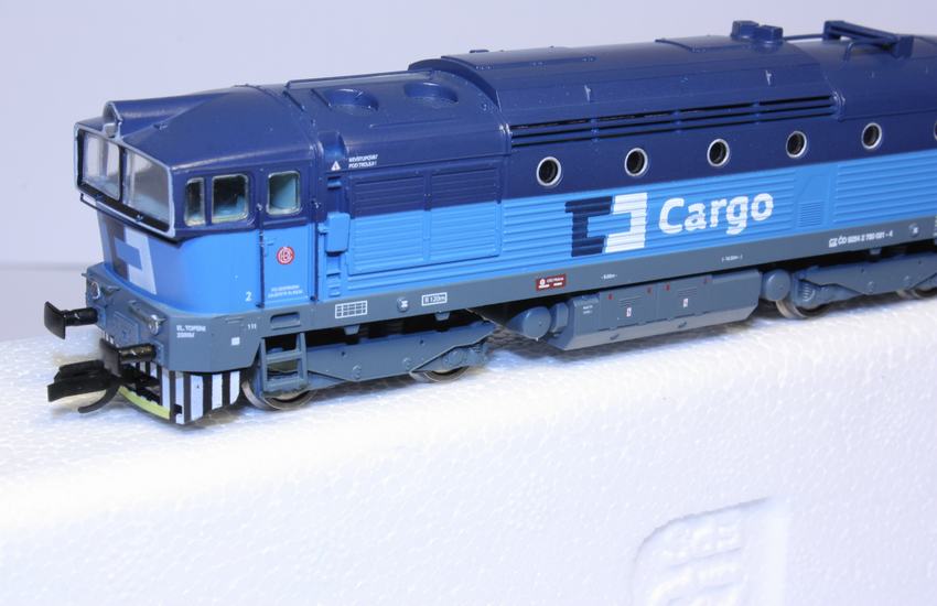 Dieselová lok. "Brejlovec" 750-061-4 ČD Cargo. Technické parametry: U lokomotivy jsou přiložené kovové tabulky a celá řada doplňků. Osvětlení: ano dle jízdy bíle/červeně Zvuk: ano dekodér Zimo Šachta dle NEM: ano Počet hnaných náprav: 4x Délka:135 mm Digitalizace a ozvučení za příplatek: ano