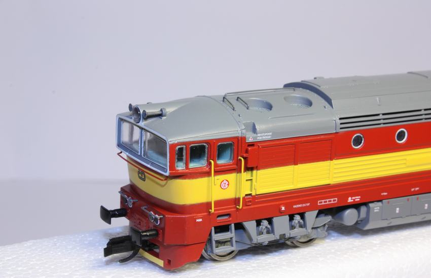 Dieselová lok. ,,BREJLOVEC" 753 drah ČD se širokým žlutým pruhem.