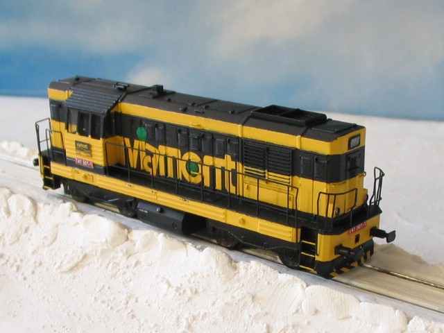 Dieselová lokomotiva 740,,Viamont" (dle přání i ČD nebo CZ-Cargo) lokomotivy tototo typu patří k našim nejrozšířenějším lokomotivám. Model má naháněny všechny 4 nápravy, osvětlení přepíná dle jízdy. Lokomotiva je usazena na pojezdu od firmy Tillig,karoserie z leptaného plechu, spřáhlo vyvedeno z podvozku příprava na digitál. Model je detailně propracován.