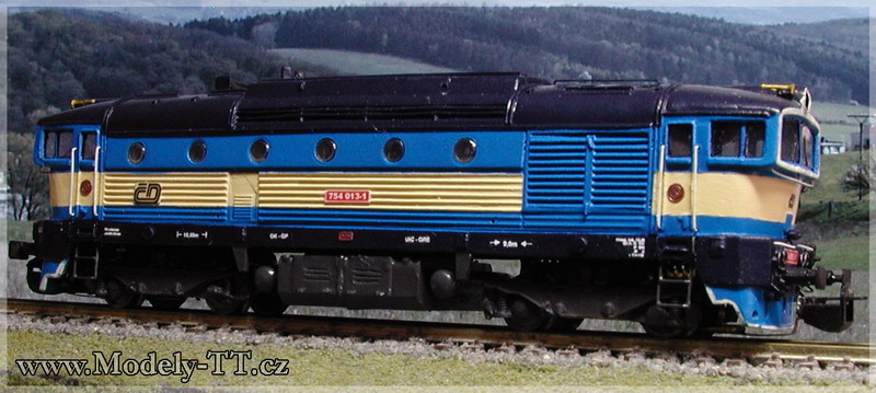 Dieselová lokomotiva řady 754 013-1 drah ČD. Model má naháněny všechny 4 nápravy, osvětlení přepíná dle jízdy bíle nebo červeně. Lokomotiva je usazena na pojezdu od firmy Tillig, karoserie z leptaného plechu spřáhlo uloženo v podvozku, příprava na digitál. Model je detailně propracován.