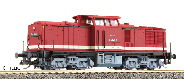 Dieselová lokomotiva BR 114 drah DR, osvětlení přepíná dle jízdy, příprava na digitál.