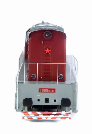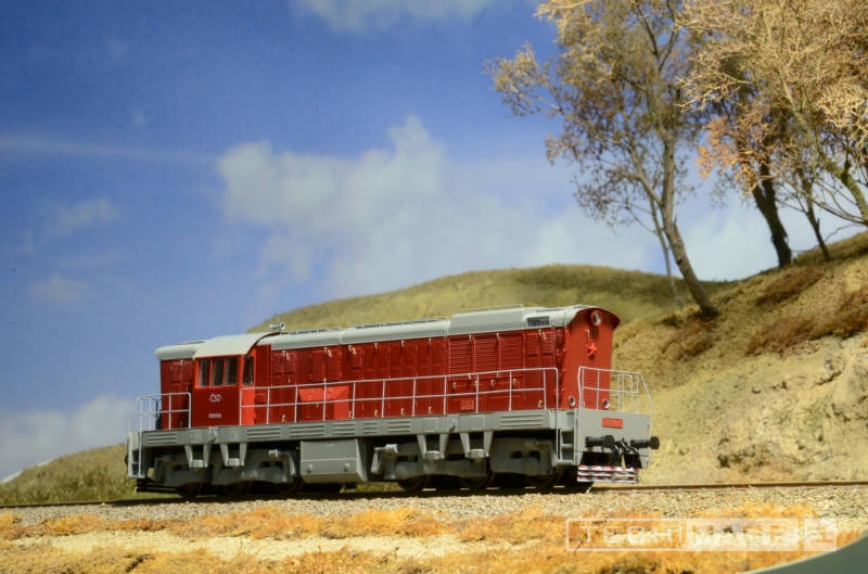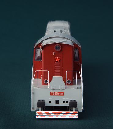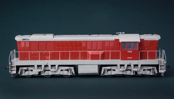 Dieselová šestinápravová lokomotiva ,,čmelák" T669.0035 ČSD se zvukem! Model je propracován dle skutečné lokomotivy do sebemenších detailů, za použití nejmodernějších technologíí výroby. Kompletní pojezdové ústrojí (převodovky, ozubená kola, šneky aj.) jsou tovární americké značky. Pohon zajišťuje kvalitní 5 pólový motor se dvěma setrvačníky. Přenos síly k oběma podvozkům zajišťují zasouvací kardany (kardan se při jízdě do zatáčky prodlužuje). Jízda modelu je tak již od nízkých rychlostí velmi klidná a plynulá. Technické údaje: Profil kol NMRA RP-25. Osvětlení: ano s přepínáním dle jízdy bílá/červená Osvětlení horního čísla na boku lokomotivy: ano Zvukový dekodér: ano Zimo Hnané nápravy: 6x Bandáže: 1x Délka přes nárazníky: 200mm Minimální rádius: 356mm Tovární pojezd: ano Šachta dle Nem: ano lze tak vložit jakékoliv spřáhlo Jedná část lokomotivy je vybavena spřáhlem, druhá strana hákem, brzdovými hadicemi a ostatními náležitostmi.