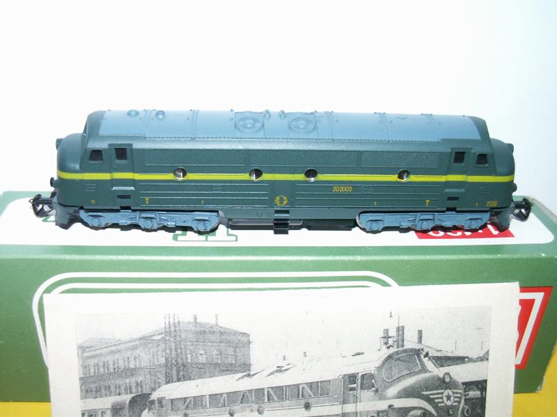 Dieselová 6 osá lokomotiva zelené barvy drah belgických pod označením 20 2003,lokomotiva má naháněny 4 nápravy, osvětlení se přepíná automaticky dle směru jízdy.