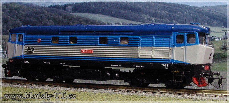 Dieselová lokomotiva řady 749 drah ČD. Model má naháněny všechny 4 nápravy, osvětlení přepíná dle jízdy bíle nebo červeně. Lokomotiva je usazena na pojezdu od firmy Tillig, karoserie z leptaného plechu spřáhlo uloženo v podvozku, příprava na digitál. Model je detailně propracován.
