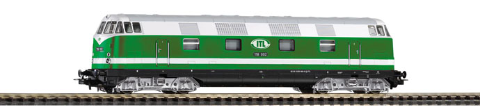 Dieselvá lokomotiva 118 drah ITL, model je osvětlen s přepínáním dle jízdy bíle/červeně. Příprava na digitál. Délka: 224 mm. Šachte dle NEM:358
