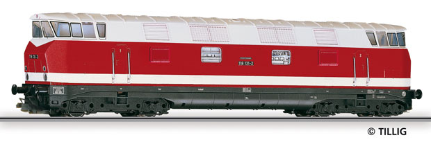 Dieselvá lokomotiva BR118 131 dráha DR. Technické parametry: Příprava na DCC: Ano NEM 658 (Decoder PluX 12) Osvětlení: 3 bodé přepíná dle jízdy Spojení: šachta dle NEM 358 Délka: 162.00 mm