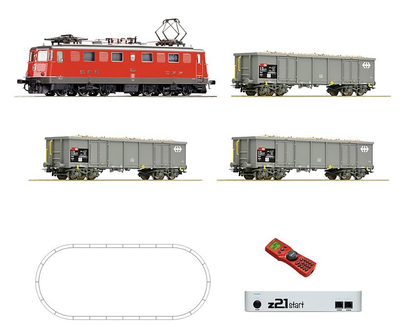 Digitální startset obsahující elektrickou lokomotivu Ae 6/6 + 3 nákladní vozy , kolejový