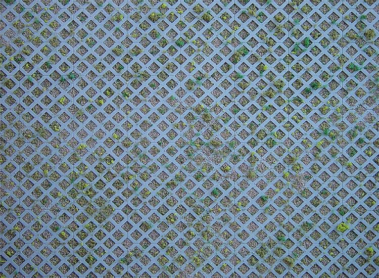 Dláždění - děrované kvádry s trávou.