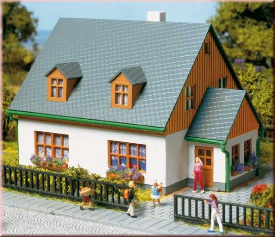 Zvláštní budova rodiného domu. Střešní okna a bez branky. Rozměry: 91x67x70mm