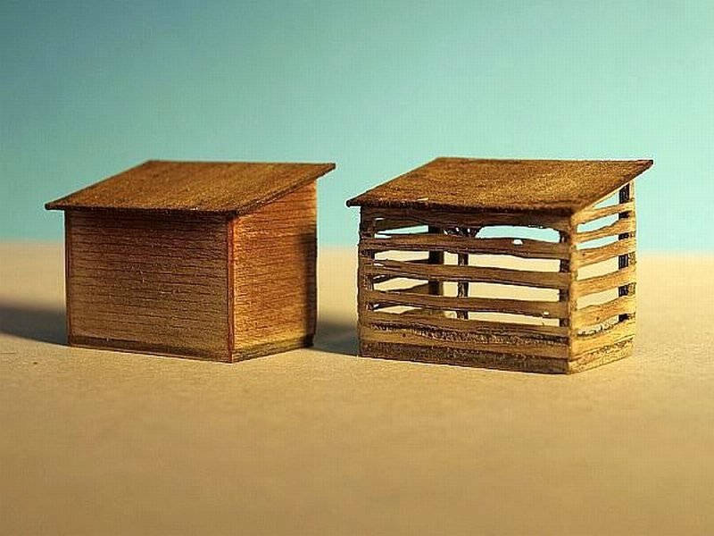 Dřevěné kůlny s patinem jsou vyřezané laserem.