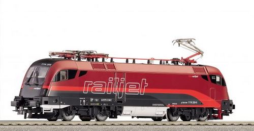 Elektr. lokomotiva „Railjet“ drah OBB. Provedení v aktuálním lakování pro OBB- štít „Railjet". Model: Jemné detailní přepracován provedení s 3 sběrači proudu. Příprava na digitál, osvětlení 3 bodé přepíná dle jízdy.