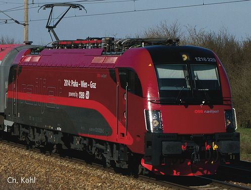 Tuto lokomotivu lze dnes spatřit běžně na trati Praha-Vídeň.